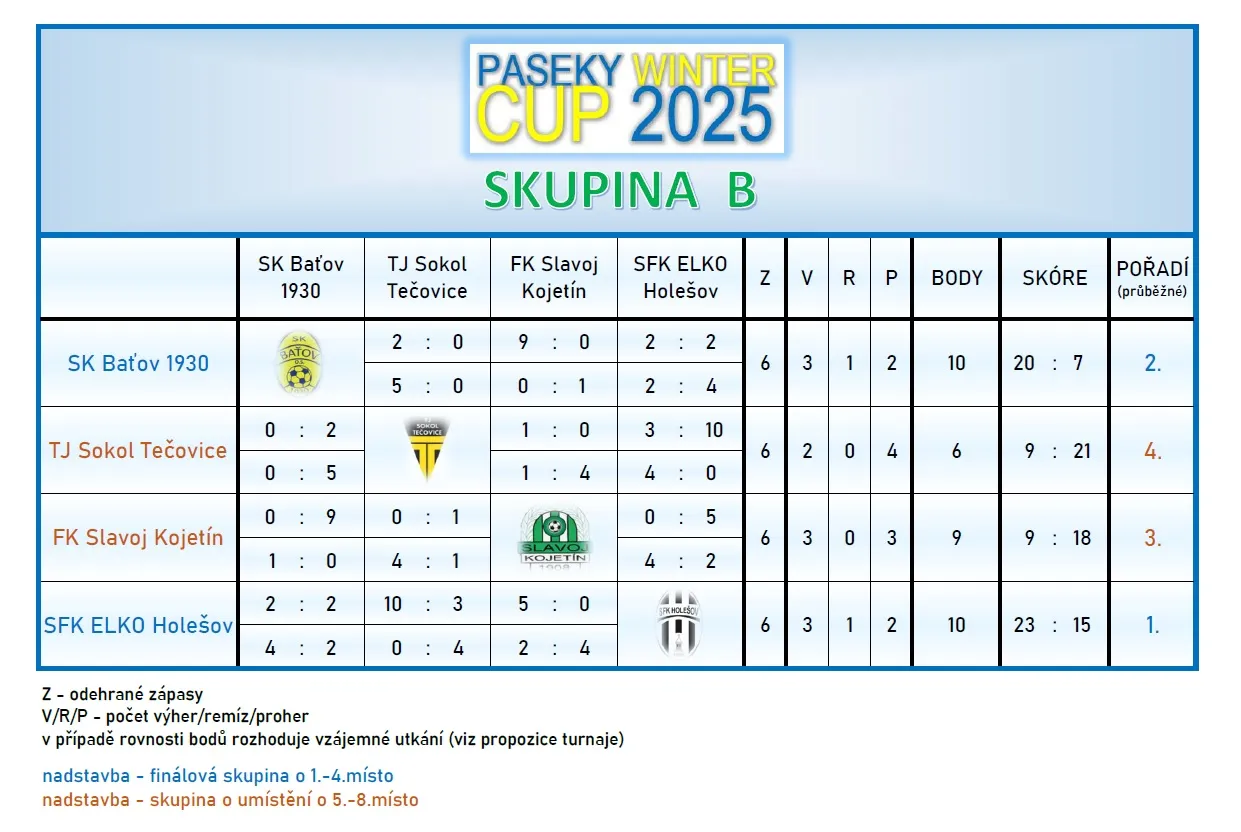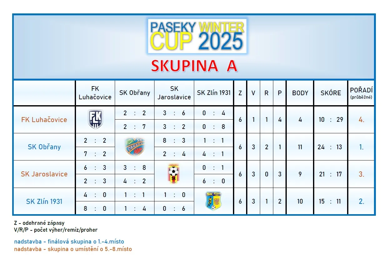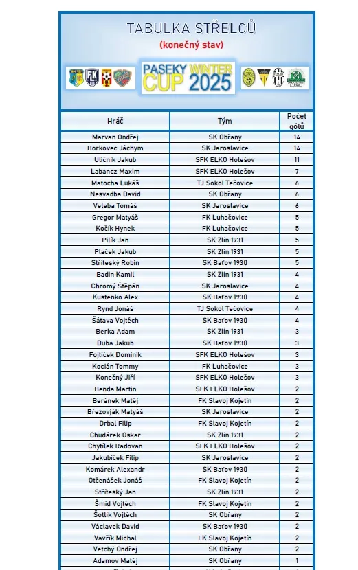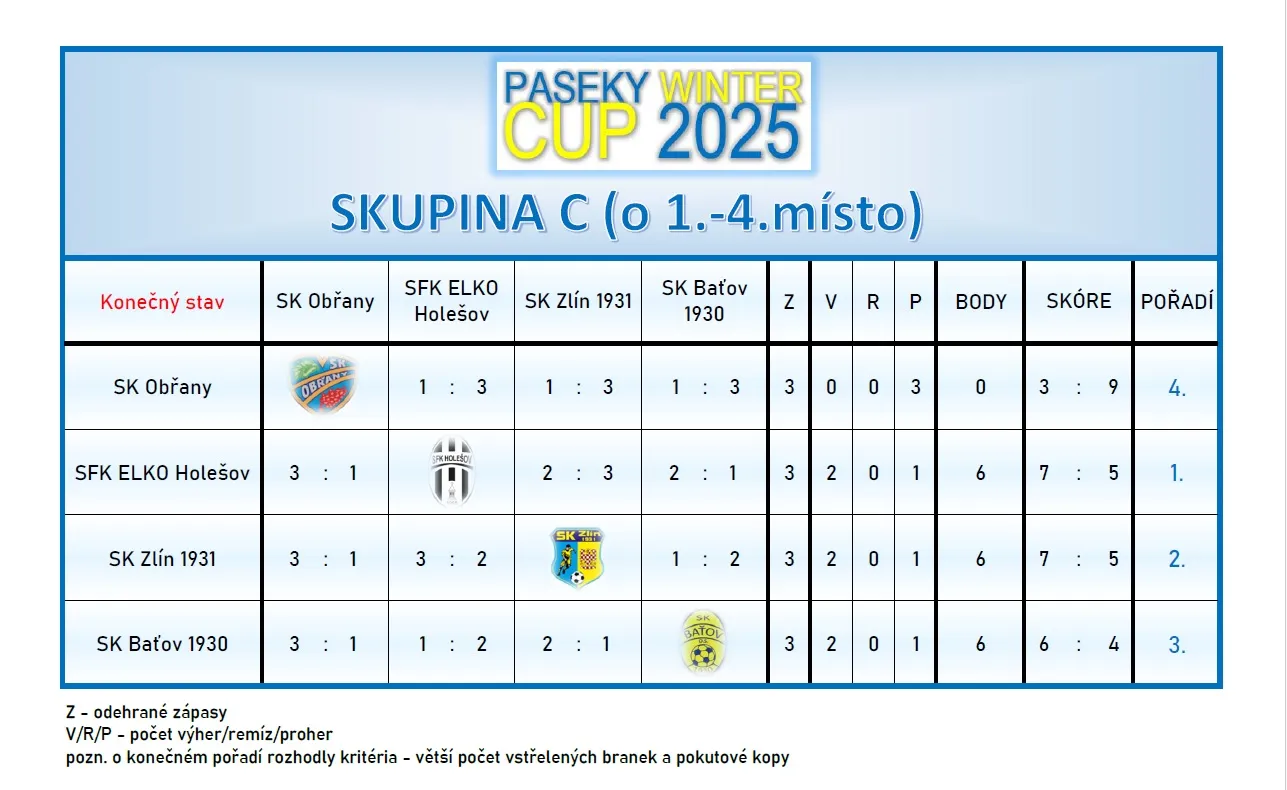Konečné výsledky – viz webové stránky turnaje: https://www.skzlin1931-zaci.cz/paseky-cup-2025/